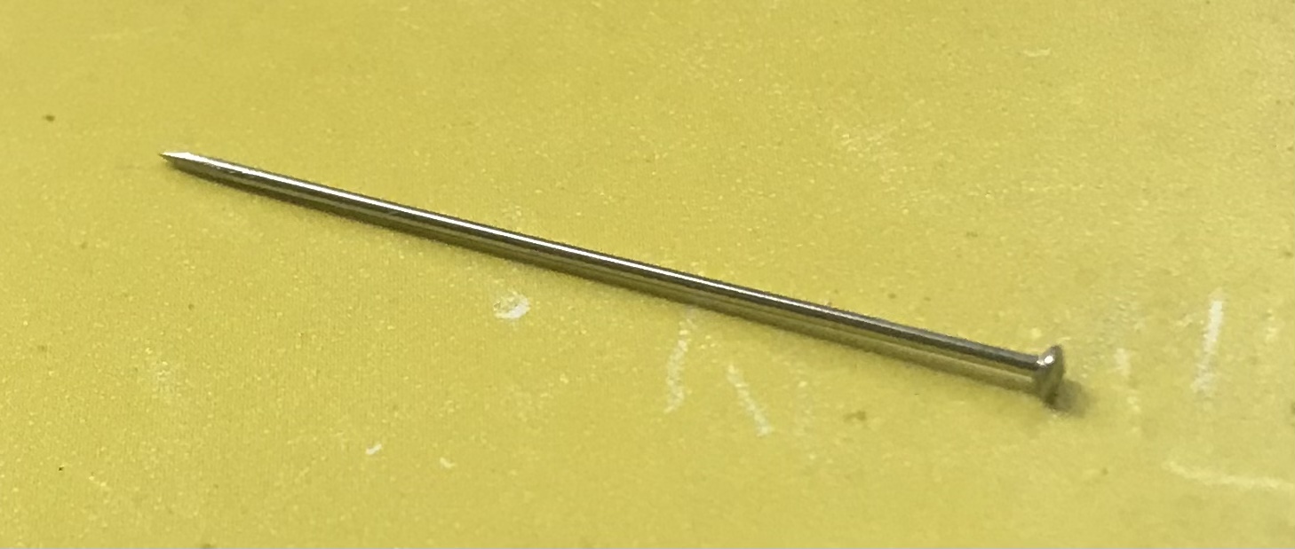 Купил две булавки. Одну утерянную приятелю, а одна себе, запасная. Диаметр фирменных 0,8 мм, а швейных 0,7