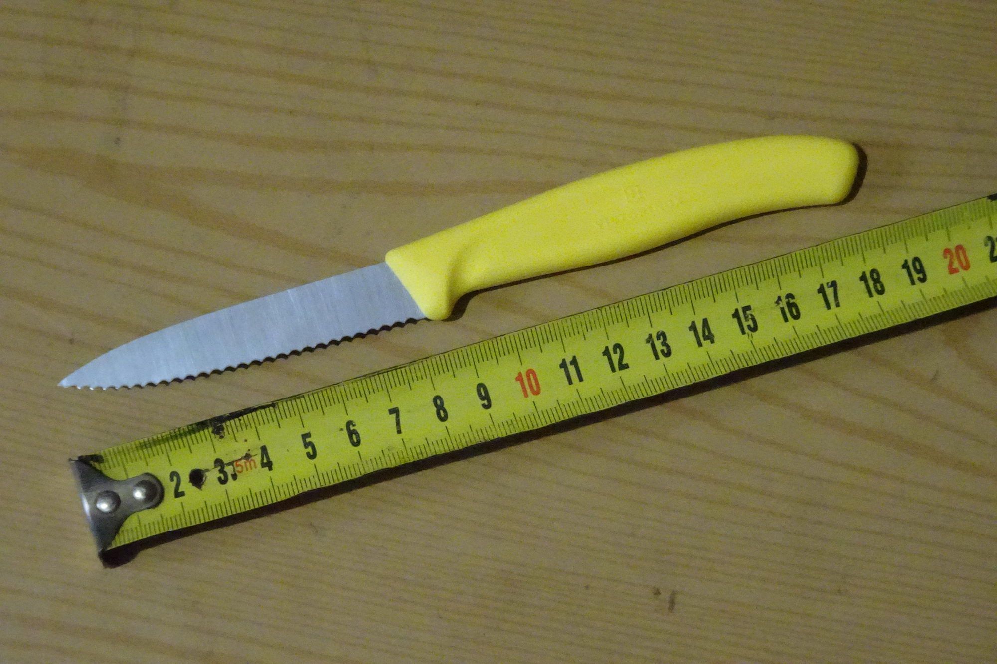 Идеальный в работе нож. Особенно радует ярко-желтая ручка - никогда не теряется на кухне. Острый.