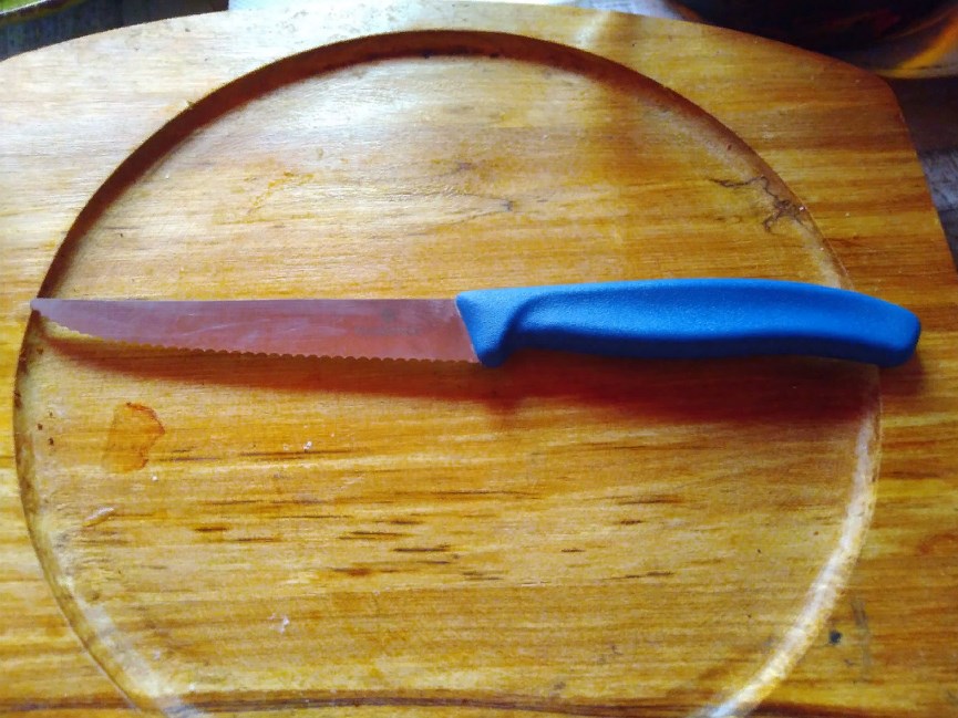 Не требует заточки, режет даже свежий багет, длина универсальная. Яркая окраска на современную кухня самое оно!