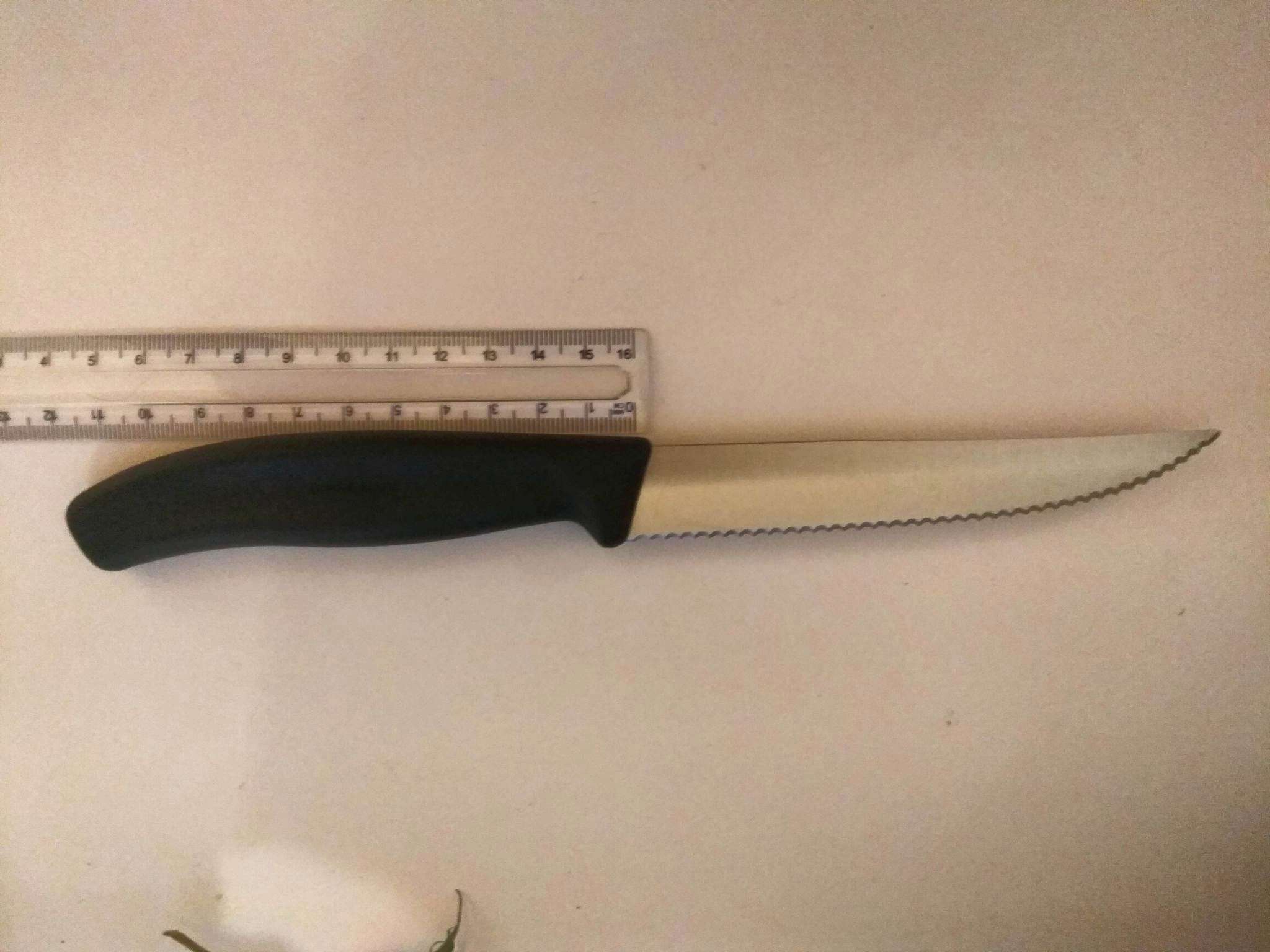 Очень острый, по началу постоянно резалась. Это надо иметь ввиду, на самом деле такая острота редко встречается, так что это плюсик. Теперь уже привыкла и вижу в ноже только одни плюсы. Всем советую, подруга уже заказала себе такой же)