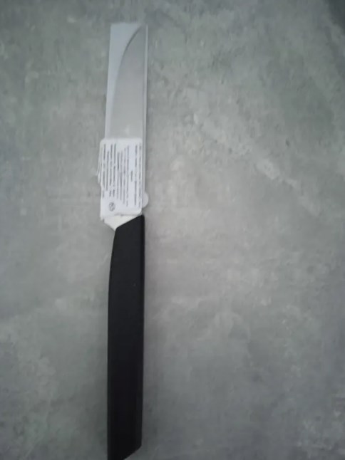 Доволен покупкой, доставлен по почте. Упаковка целая. Нож качественный, режет все продукты без усилий. 5 баллов.