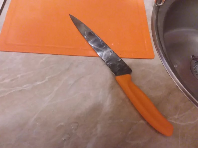Справляется с овощами, фруктами, мясом, рыбой. Да и хлеб легко разрежет. Короче, удобный и качественный нож. Красивая красная ручка, но на фото кажется, что цвет немного другой. Это, наверное, лучший нож в своей ценовой категории.