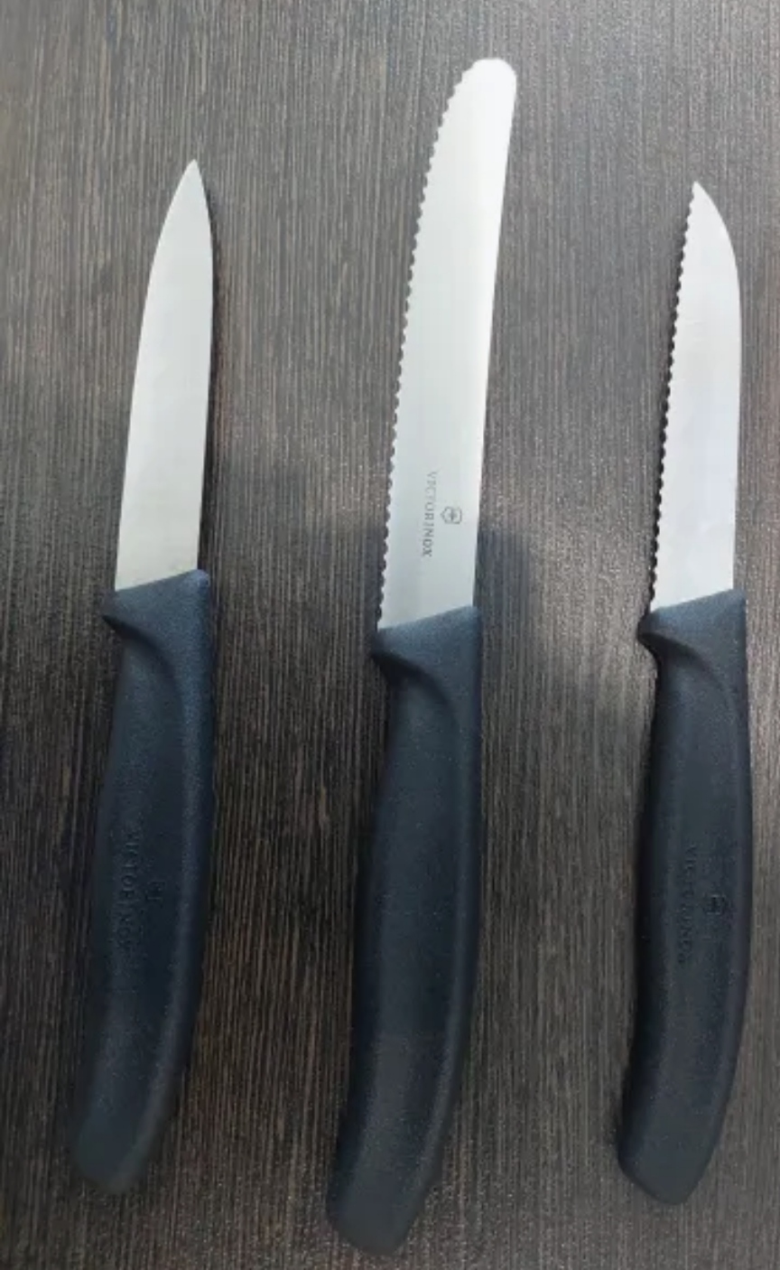 Отличные ножи, которые своим качество полностью оправдывают стоимость. Удобно, что в одном наборе сразу три разных ножа. Пользуюсь теперь только ими.