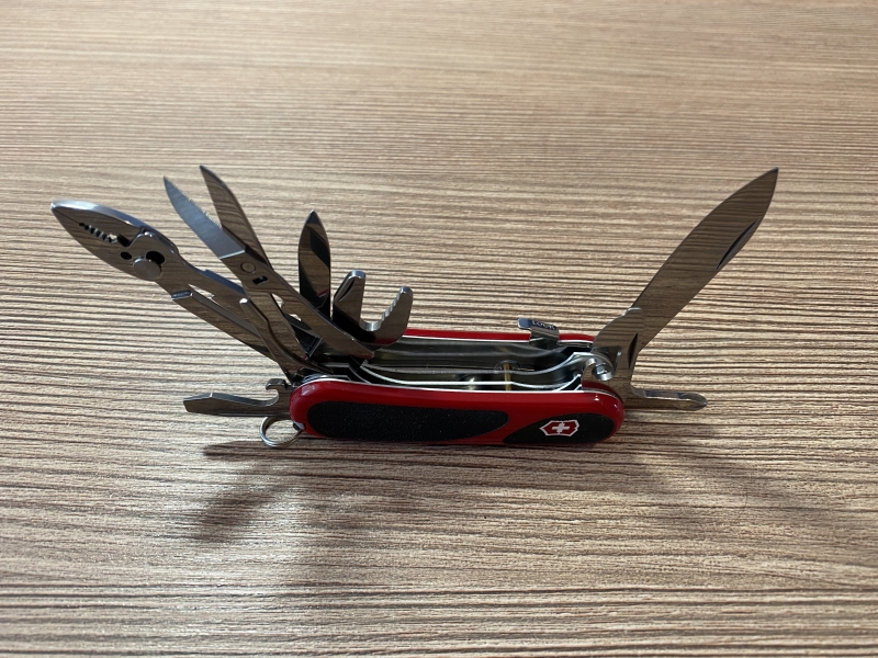 - С лезвием; С консервным ножом; С отверткой; С инструментом для зачистки проводов; С пилкой для ногтей; С инструментом по уходу за ногтями; Со штопором; С шилом; С плоскогубцами; С инструментом для обжима проводов; С ключом; С кусачками; С гайковертом; С крестовой отверткой; С зубочисткой; С ножницами; С кольцом для ключей