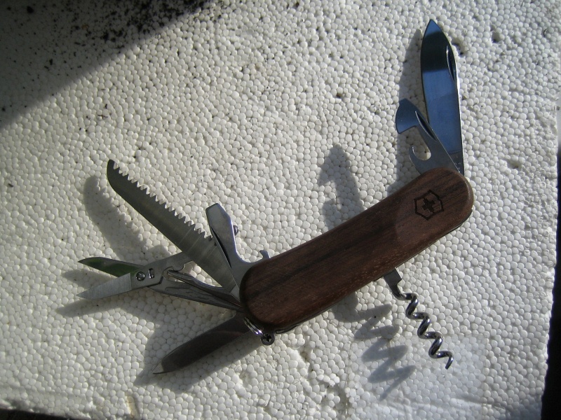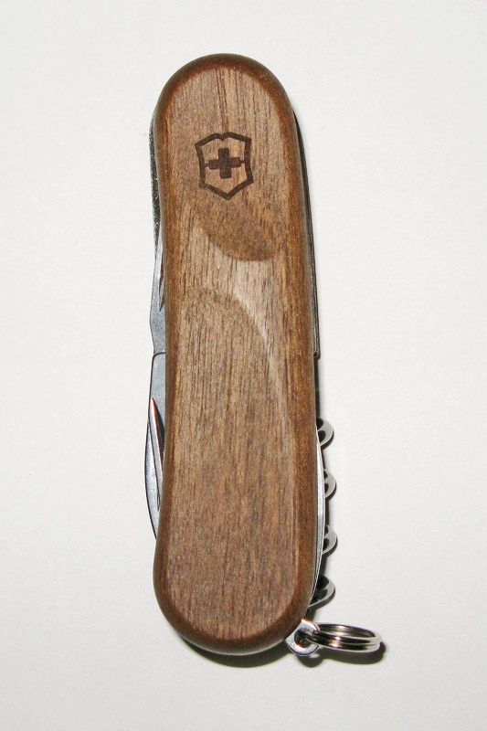 Качественный нож с деревянной рукояткой. Смотрится стильно и статусно. Сталь качественная, долго не затупляется. Нож многофункциональный, есть много важных инструментов, помимо клинка: ножницы, пилка для ногтей и другие. В руке держать приятно, не скользит.