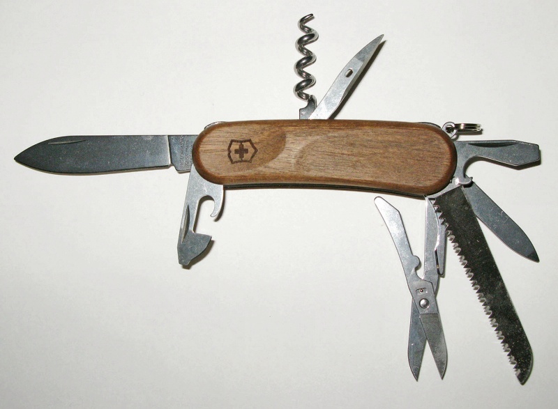 - С лезвием; С консервным ножом; С отверткой; С открывалкой для бутылок; С инструментом для зачистки проводов; С пилкой для ногтей; С инструментом по уходу за ногтями; С пилой по дереву; С шилом; Со штопором; С ножницами; С кольцом для ключей
