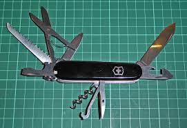 - С лезвием; Со штопором; С консервным ножом; С малой отверткой; С открывалкой для бутылок; С отверткой; С инструментом для снятия изоляции; С шилом; С кольцом для ключей; С ножницами; С крючком; С пилой по дереву; С пинцетом; С зубочисткой